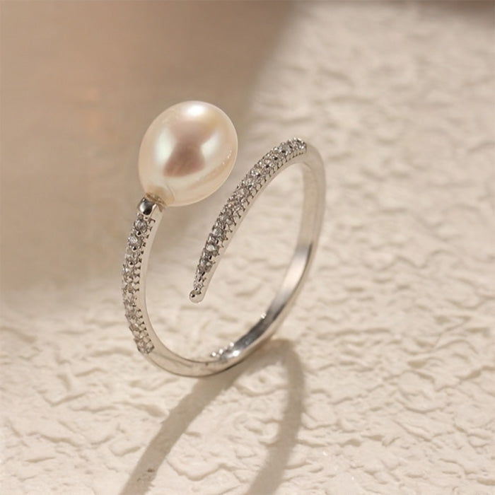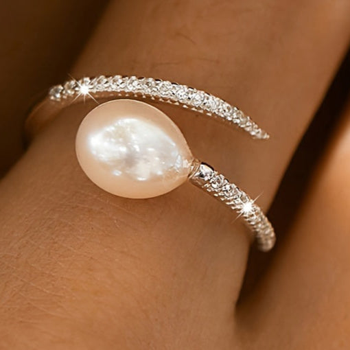 Diseño refinado: Su estructura abierta y ajustable se adapta con facilidad a cualquier dedo. Está decorado con cristales pequeñitos que aportan un toque de luz y una perla central como protagonista, símbolo de feminidad, calma y elegancia.