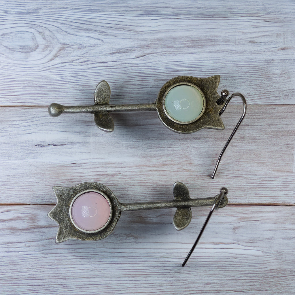 Cada par presenta dos flores encantadoras, cada una con una piedra de distinto color en el centro, agregando un toque de diversidad y elegancia. Además, su diseño asimétrico brinda una orientación diferente al ponerlas en la oreja, permitiéndote destacar tu estilo de una manera única y distintiva.
