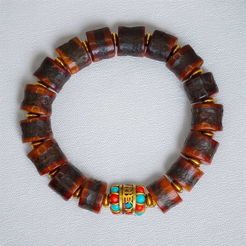 Este brazalete combina piezas de madera natural en tonos cálidos, resaltadas con detalles dorados que aportan un toque de elegancia. Su diseño versátil es perfecto tanto para el día a día como para eventos especiales, ofreciendo una opción atemporal y equilibrada.