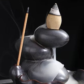- Cuando el cono de incienso está encendido, su humo deja un rastro que imita el agua bajando por la montaña. Disfruta de la inspiradora calma que entrega el mirarlo seguir su cauce.