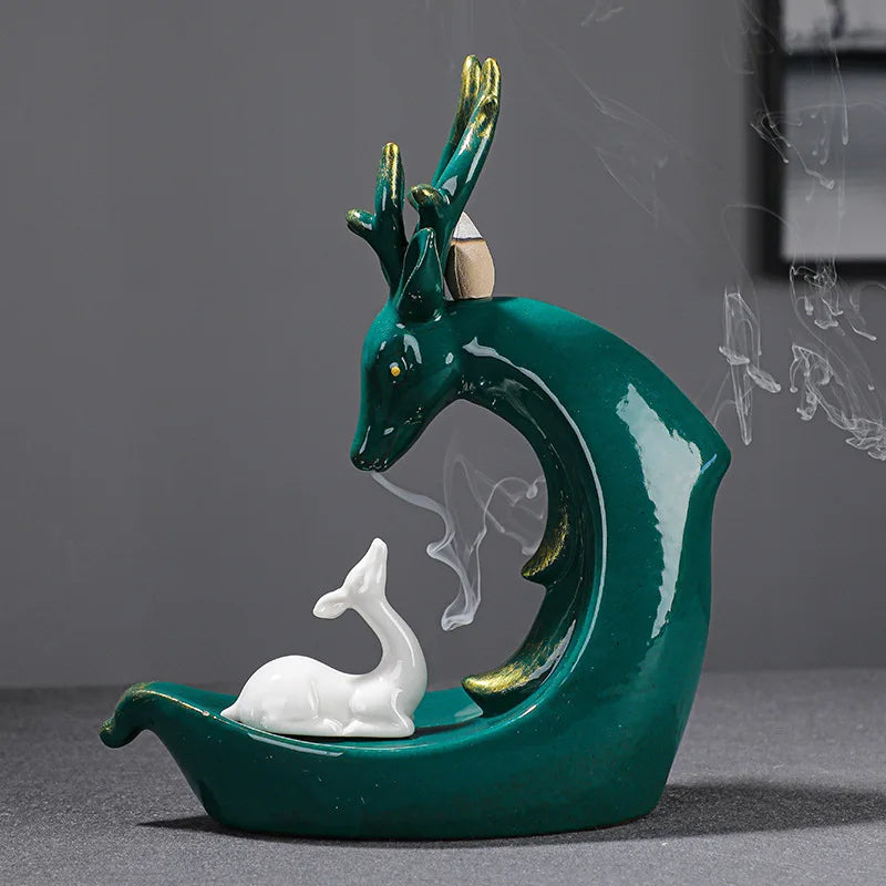 Esta encantadora pieza presenta a una cierva mirando amorosamente a su cría, simulando una conexión maternal. El humo fluye suavemente entre las figuras, creando una atmósfera relajante y serena.