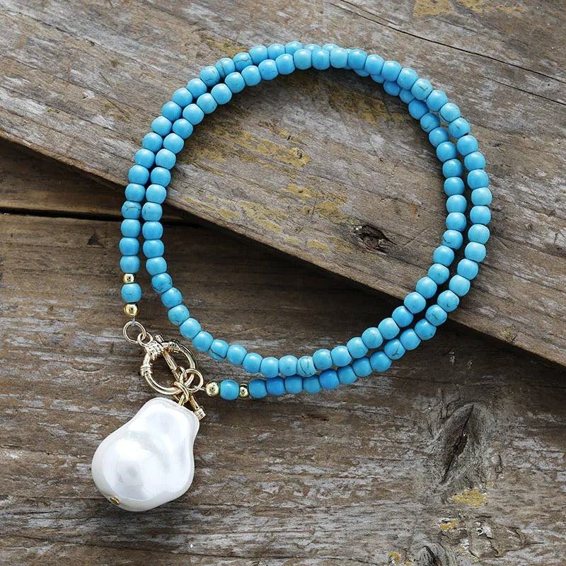 | Material | Cuentas naturales Turquesa + shell pearl (imitación de perla, no cultivada) |