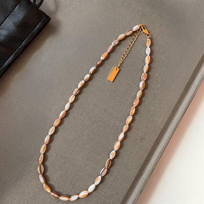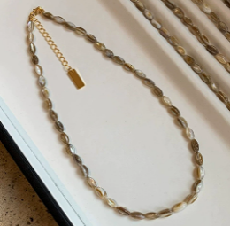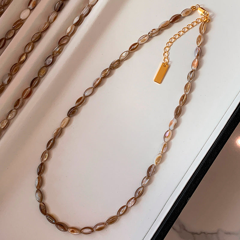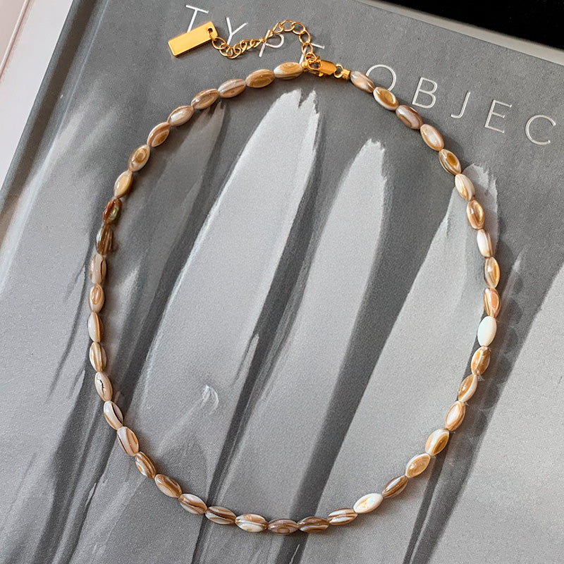 Un diseño elegante y natural que combina pequeñas perlas ovaladas en cálidos tonos marrón, beige y ámbar, creando un efecto armónico y versátil. Su acabado brillante y cierre ajustable en tono dorado lo convierten en una pieza perfecta para realzar cualquier look, desde lo casual hasta lo más sofisticado. Ligero y cómodo, es ideal para quienes aman los accesorios con un toque orgánico y atemporal.