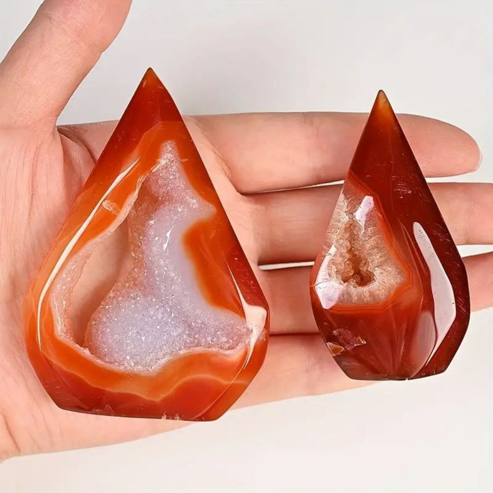 El ágata es una piedra de la familia de los cuarzos que destaca por sus capas y tonos naturales, considerados símbolos de equilibrio y protección. A nivel energético, se le atribuye la capacidad de armonizar cuerpo, mente y espíritu, aportando serenidad en momentos de tensión y actuando como un escudo frente a energías negativas. También se relaciona con el arraigo y la conexión con la tierra, lo que la convierte en una aliada para mantener la estabilidad emocional y tomar decisiones con mayor claridad.