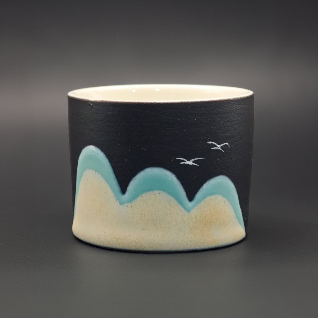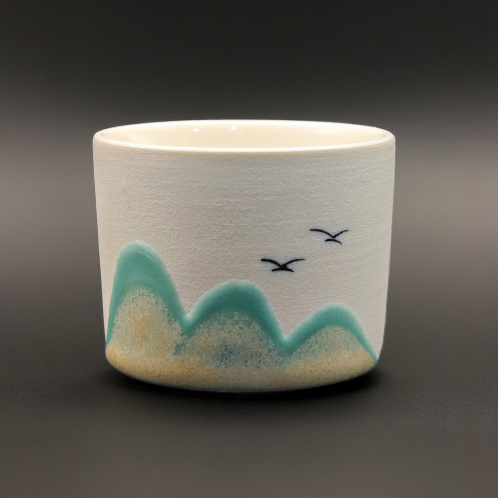 El Set Cumbres está compuesto por cuatro tazas ilustradas con paisajes inspirados en horizontes lejanos, donde las formas suaves y los tonos cálidos se encuentran con la calma. Cada pieza es distinta, creando un conjunto armónico que transforma cualquier pausa de té o café en un momento consciente.
