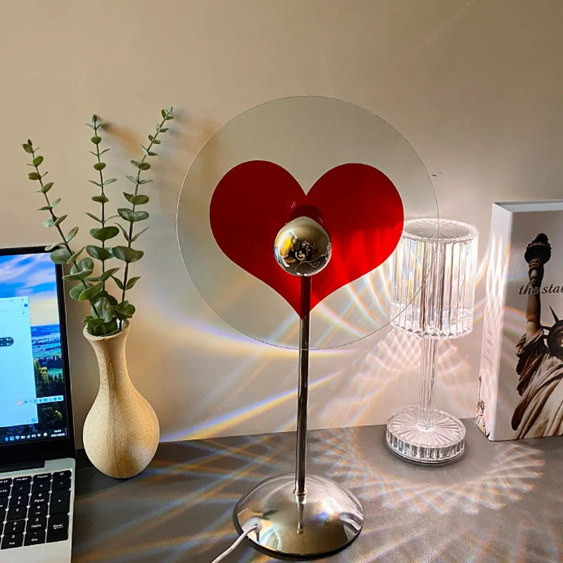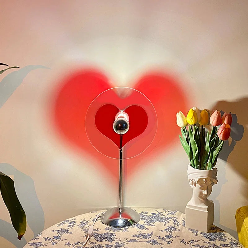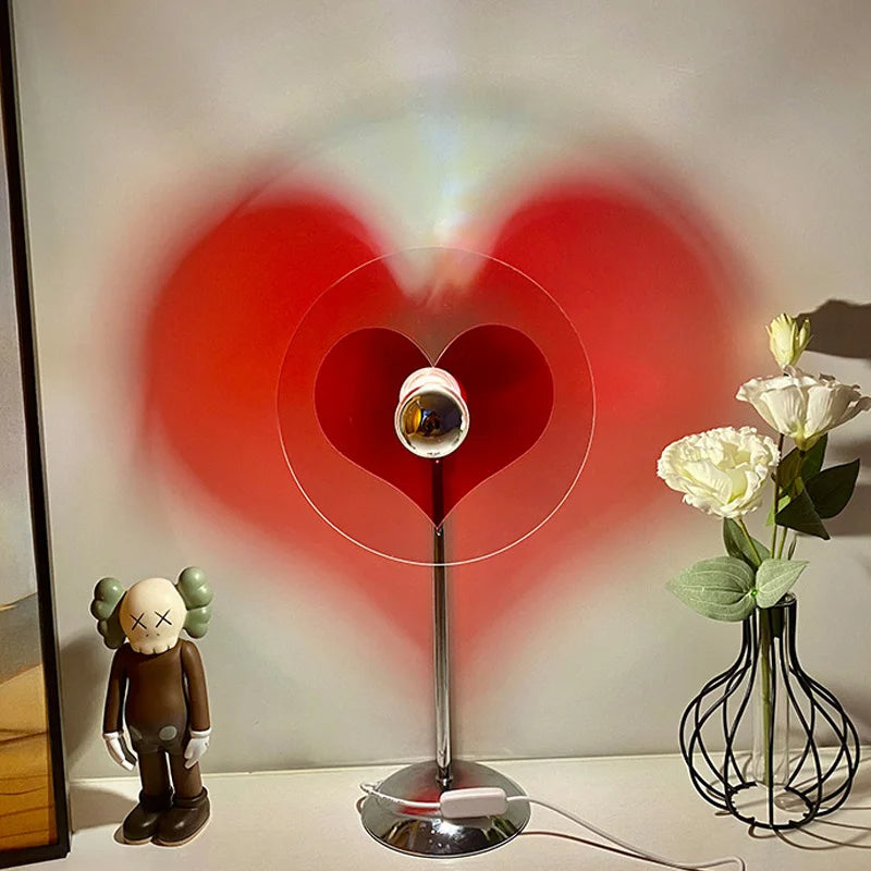 Ilumina tus espacios con un toque de romanticismo y elegancia con nuestra Lámpara Ambiente de Amor. Esta lámpara única presenta un diseño central en forma de corazón, acompañado de un detalle esférico que refracta la luz, proyectando una encantadora sombra en forma de corazón en la pared. Su base y soporte metálicos le otorgan un estilo moderno y sofisticado, perfecto para cualquier decoración.