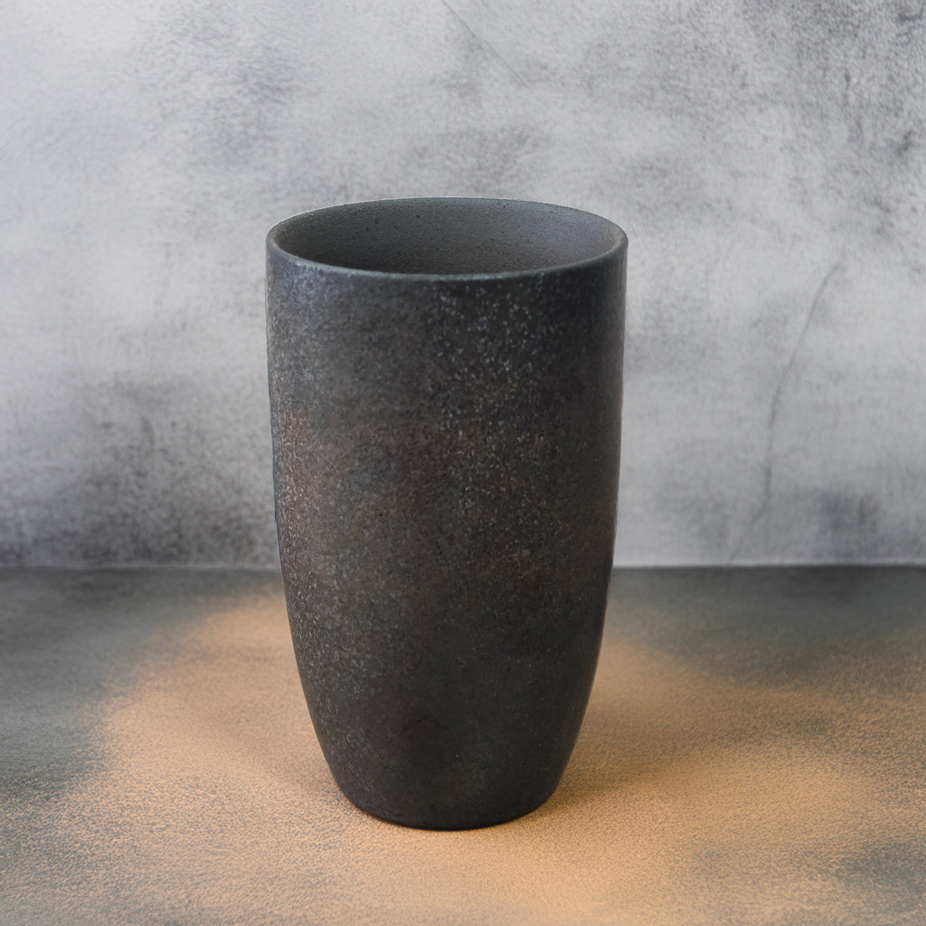 Taza de cerámica en tonos tierra con sutiles destellos dorado, combinando tradición y elegancia en un solo conjunto. Ideal para disfrutar de tus bebidas favoritas y perfecta para uso diario o como pieza decorativa.