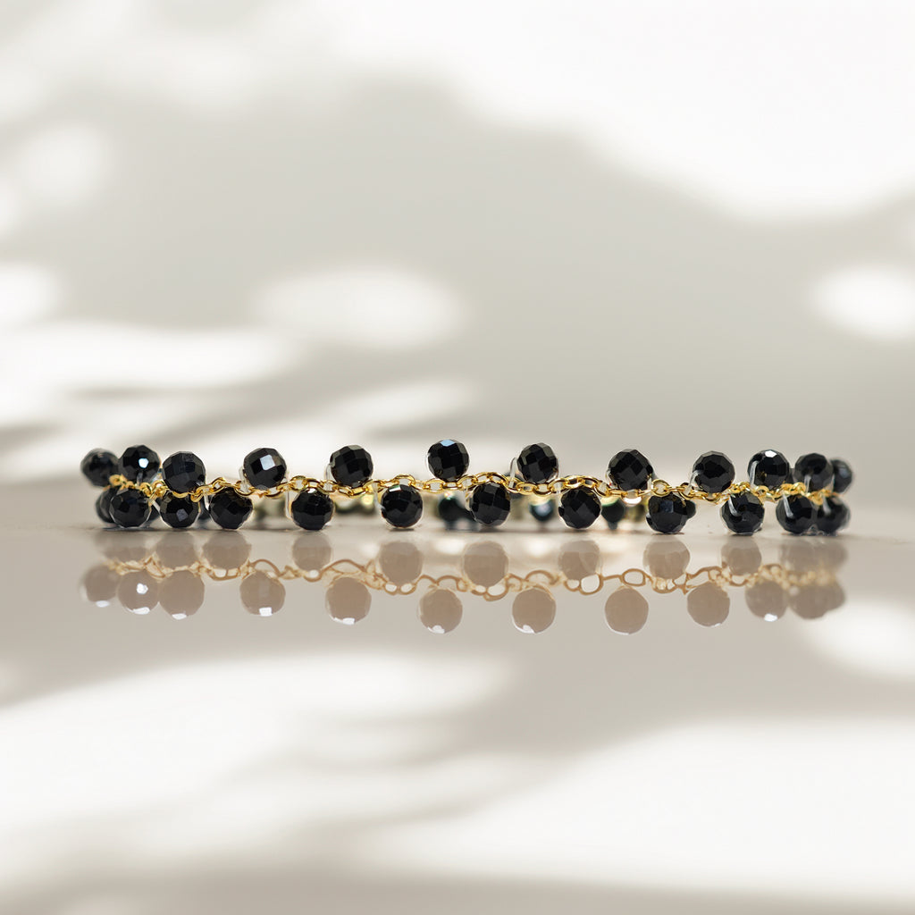 Pulsera con cuentas de Espinela negra y Perla en el broche.