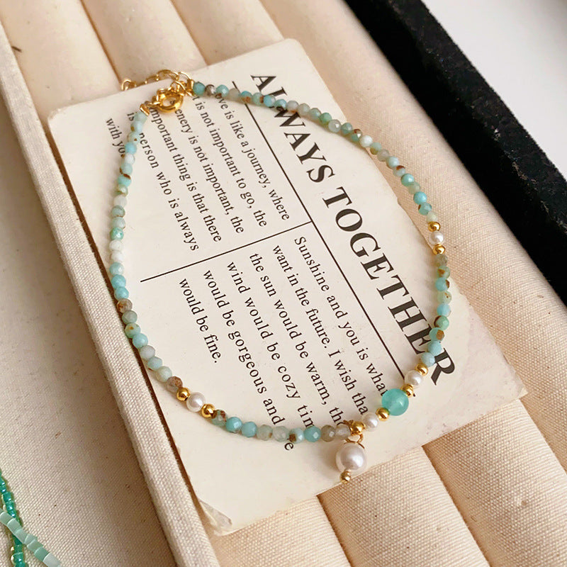 Una tobillera elegante y delicada que combina perlas de imitación de suave brillo con un colgante circular de ópalo rosa enmarcada en cristales. Ideal para aportar un toque de sofisticación y armonía a cualquier look.
