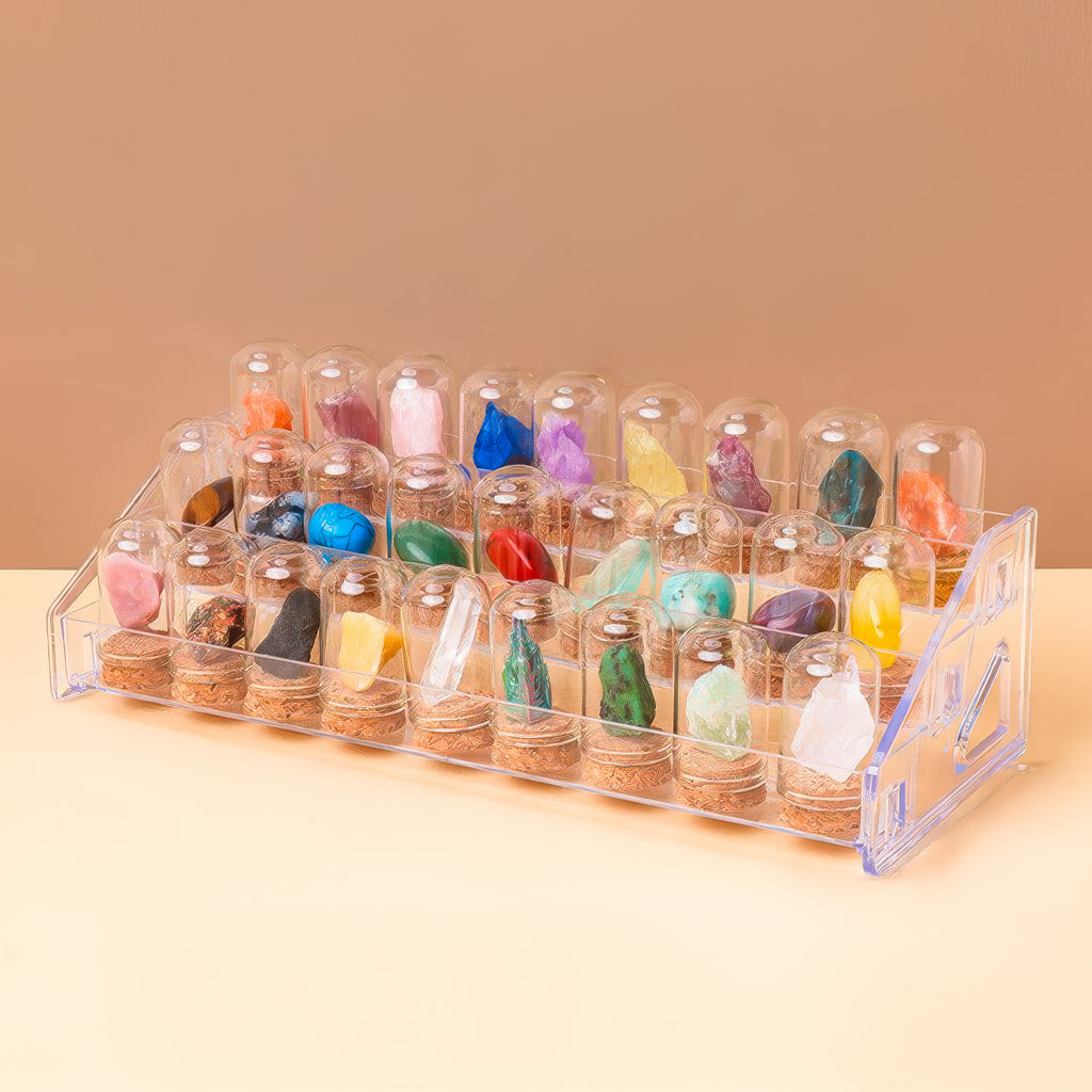 Descubre la magia de la naturaleza en miniatura con este fascinante set de 27 minerales cuidadosamente presentados en frascos individuales. Cada pieza es única y conserva las formas, texturas y colores auténticos que solo la tierra puede crear, convirtiéndolo en un tesoro visual y educativo a la vez.