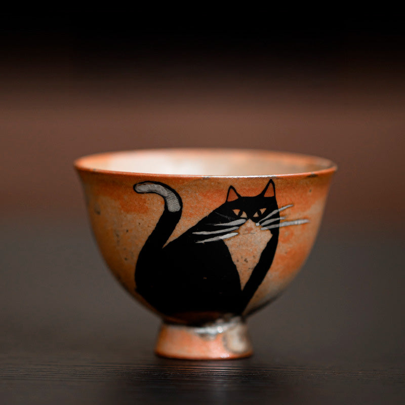 Esta pequeña y elegante taza japonesa de cerámica en tonos tierra es versátil y práctica. Perfecta para servir té matcha, un espresso de café o como salsero, se adapta a cualquier ocasión. El encantador dibujo de un gato negro añade un toque de estilo y tradición a su diseño. Un complemento ideal para tu hogar.